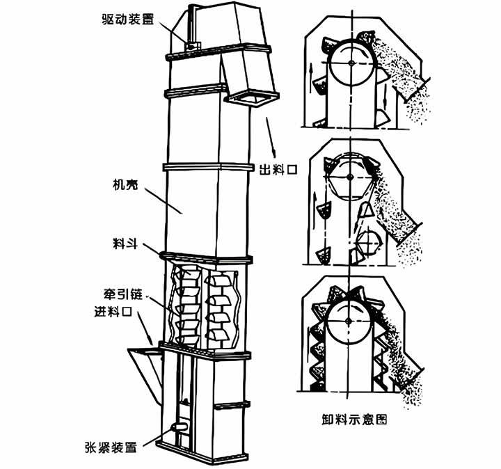2、按安置方式:可分為立式和傾側(cè)式兩種、按卸料形式不一樣:可分為離心式、重力式和混合式。離心式斗式提高機(jī):利用離心思將物料甩出卸料口諾和。適合使用于提高速度快、干燥、小顆粒的場(chǎng)合。重力式斗式提高機(jī):在重力效用下,物料沿前一料斗背部降落。適合使用于大塊、比重大、易碎物料的輸送?;旌鲜蕉肥教岣邫C(jī):離心思+重力,適合使用于流動(dòng)性差、潮潤(rùn)物料。