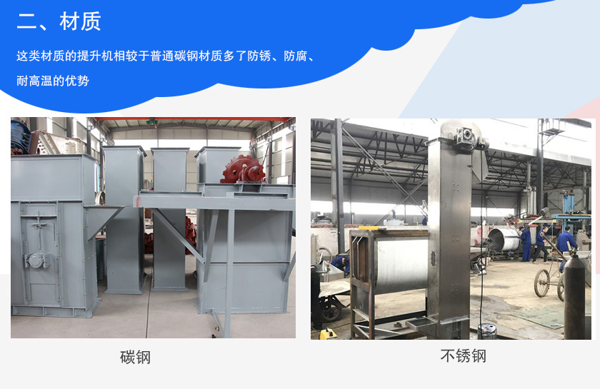 對于衛(wèi)生環(huán)境要求較高的行業(yè)(如:食品)在購買是就會選擇不銹鋼材質(zhì)制作而成的NE板鏈提升機(jī),這類材質(zhì)的提升機(jī)相較于普通碳鋼材質(zhì)多了防銹、防腐、耐高溫的優(yōu)勢,整機(jī)經(jīng)過嚴(yán)格的拋光處理后表面光滑無任何毛刺,焊接之處經(jīng)過打磨而成,清理方便,但是其成本也比碳鋼材質(zhì)要高,所以價格會相對貴一些。