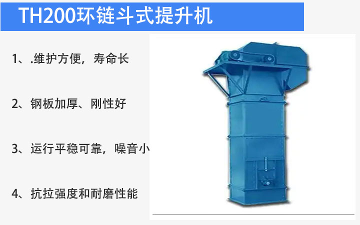 TH200環(huán)鏈斗式提升機(jī)適用于輸送粉狀、粒狀及小塊狀的無磨琢及磨琢性小的物料。TH型是一種圓環(huán)鏈斗式提升機(jī)采用混合式或重力卸料,挖取式裝料。牽引件用優(yōu)質(zhì)合金鋼高度圓環(huán)鏈。中部機(jī)殼分單、雙通道兩種形式為機(jī)內(nèi)重錘箱恒力自動張緊。鏈輪采用可換輪緣組合式結(jié)構(gòu)。使用壽命長,輪緣更換工作簡便。下部采用重力自動張緊裝置,能保持恒定的張緊力,避免打滑或脫鏈,同時料斗遇到偶然因素引起的卡殼現(xiàn)象時有一定的容讓性,能夠有效地保護(hù)下部軸等部件。