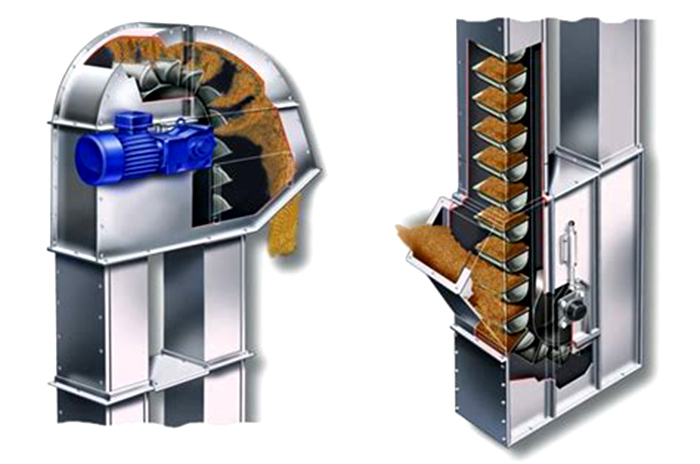 驅(qū)動裝置:斗式提升機(jī)的驅(qū)動裝置由傳動滾筒(或鏈輪),電機(jī)、減速器、聯(lián)軸器、逆止器及驅(qū)動平臺組成。